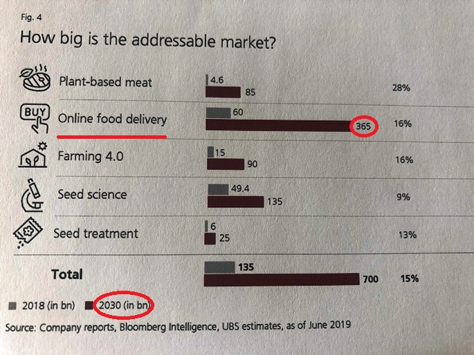 Le opportunità in questi campi (prodotti alternativi e tecnologia) sono state stimate da UBS in 700 miliardi di $ nel 2030.
