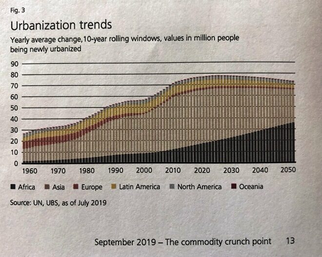 Sotto la curva dell’urbanizzazione nel mondo tratta da The commodity crunch point di UBS