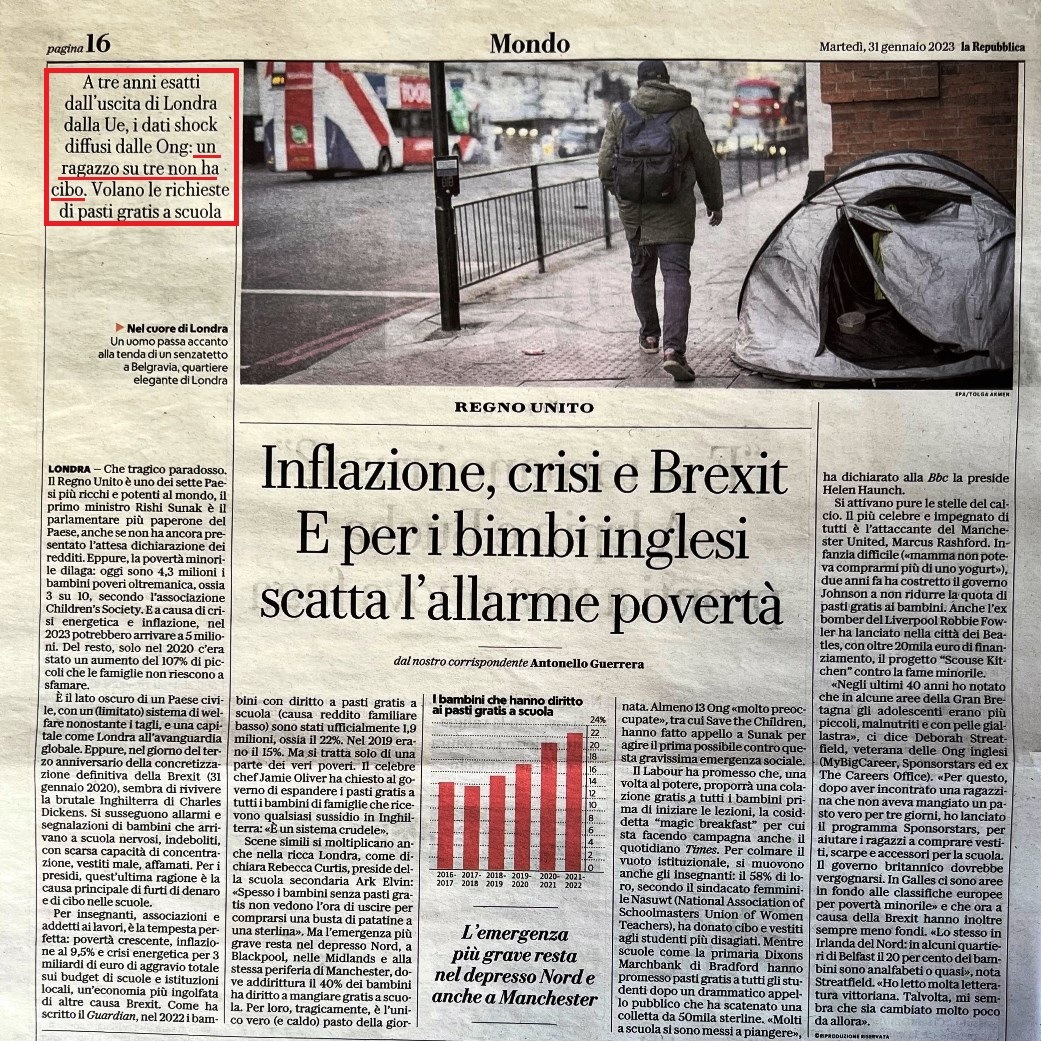 Fonte : Newsletter New York Times e Repubblica, gennaio 2023 ma anche Le Monde , nel 2022, ha dedicato una serie di 6 articoli al “malessere inglese”, accentuato dalla Brexit.
