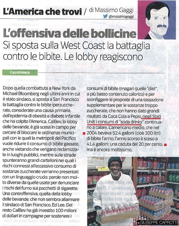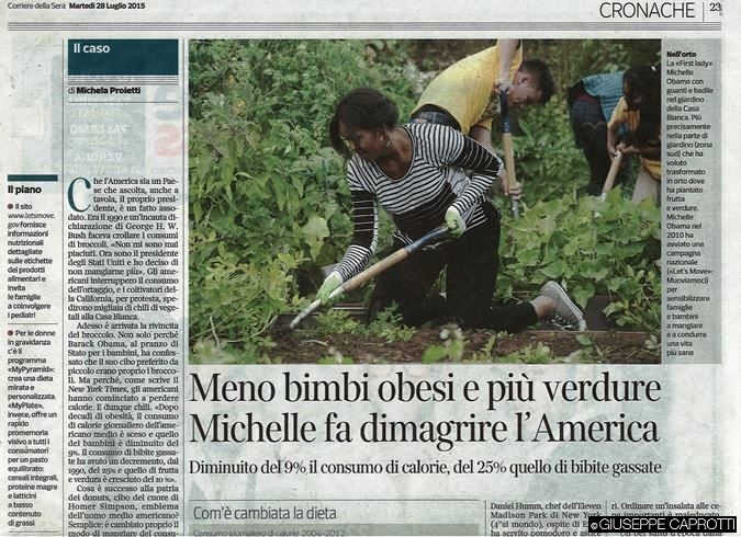 la tendenza alla riduzione delle calorie (-9% dal 2004 al 2012) viene segnalata anche dal Corriere della Sera del 28 luglio 2015 che basa le sue affermazioni su uno studio dell’Università della Carolina del Nord