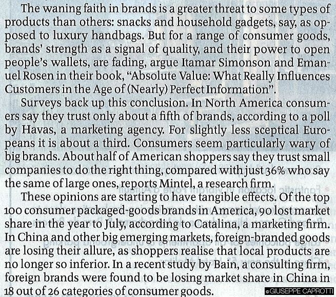 Da segnalare che in Italia, facendo leva sul prezzo, le grandi marche, dopo tanti anni di calo, stanno riprendendo quota di mercato v. :