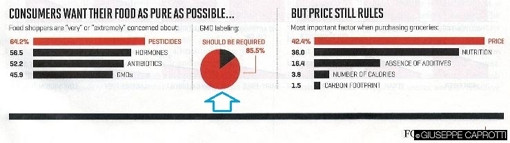 4) l’85,5% del pubblico americano è favorevole all’etichettatura che segnali la presenza di ingredienti ogm