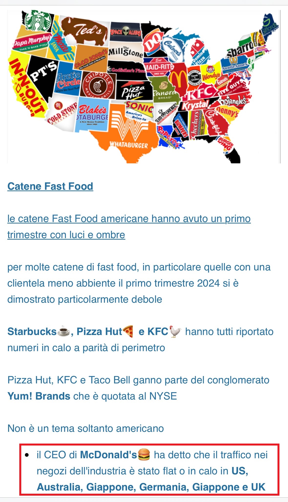 USA: Mc Donald’s, Coca-Cola, Nestlè, Pepsi, Starbucks segnalano cali di volumi dovuti all’inflazione
